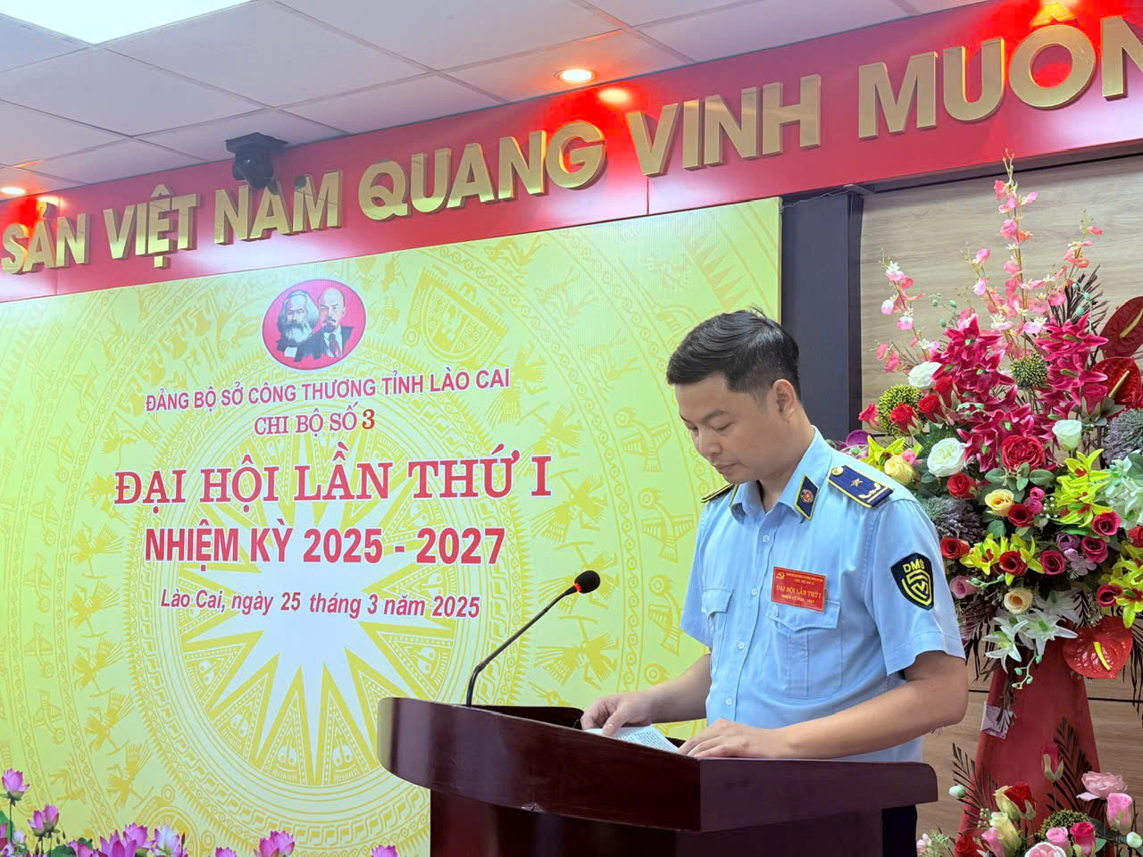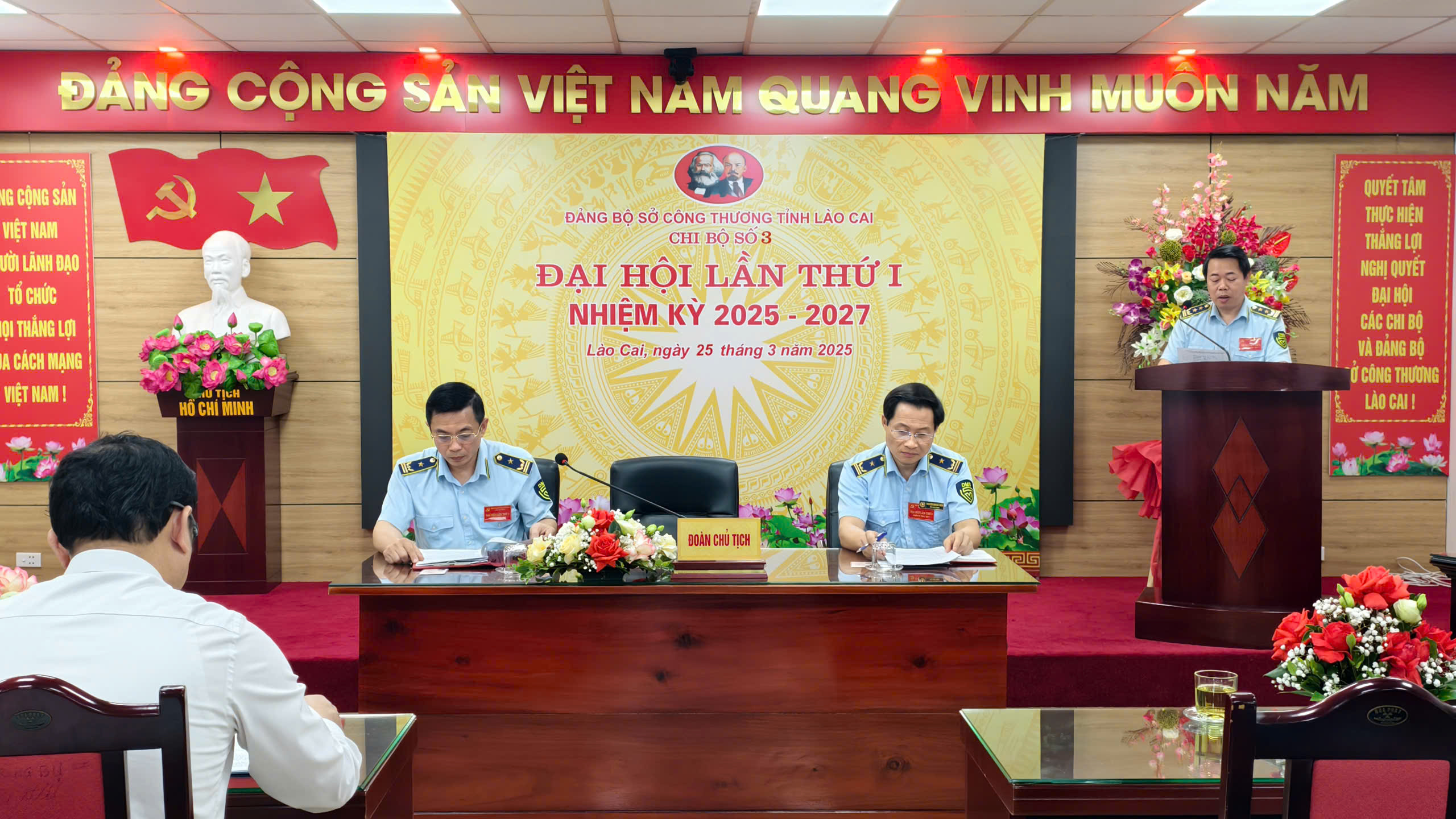 Với tinh thần khẩn chương, tích cực thực hiện Nghị quyết số 18-NQ/TW của Ban Chấp hành Trung ương khóa XII và các Kết luận của Bộ Chính trị khóa XIII về thực hiện sắp xếp tinh gọn bộ máy hoạt động hiệu năng, hiệu lực, hiệu quả; ngay sau khi được thành lập theo Quyết định số 21-QĐ/ĐU, ngày 19/3/2025 của Đảng ủy Sở Công Thương, do có sự chuẩn bị cẩn thận, chu đáo về mọi mặt và được sự đồng ý, hướng dẫn trực tiếp của Đảng ủy Sở Công Thương, vào sáng ngày 25/3/2025 Chi bộ số 3 (Chi cục Quản lý thị trường tỉnh Lào Cai) đã tổ chức thành công Đại hội Chi bộ nhiệm kỳ 2025 - 2027.