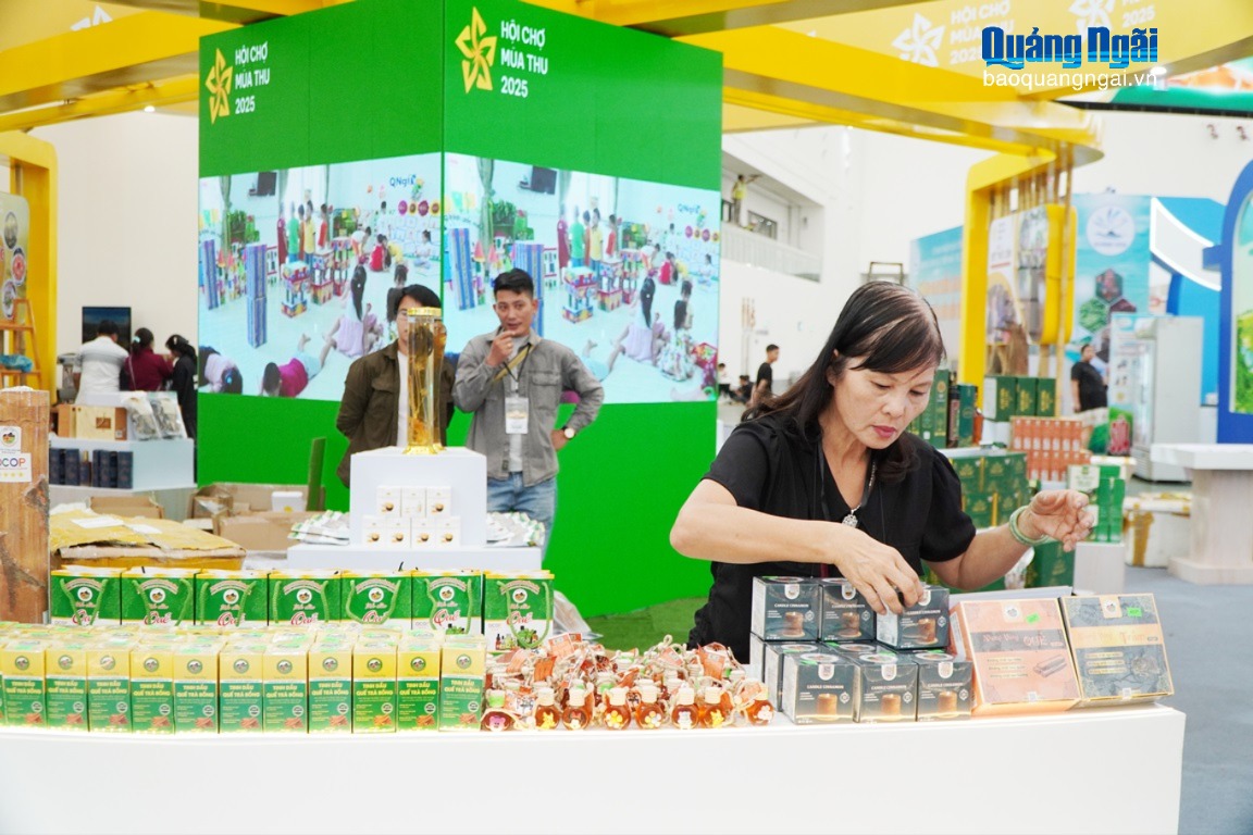 Vượt qua mọi cách trở địa lý, 15 doanh nghiệp, HTX Quảng Ngãi (từ núi cao, biên giới đến hải đảo) đã mang sản phẩm tiêu biểu đến Hội chợ Mùa Thu lần thứ I - năm 2025 tại Hà Nội, góp phần tăng thêm sự đa dạng, phong phú.