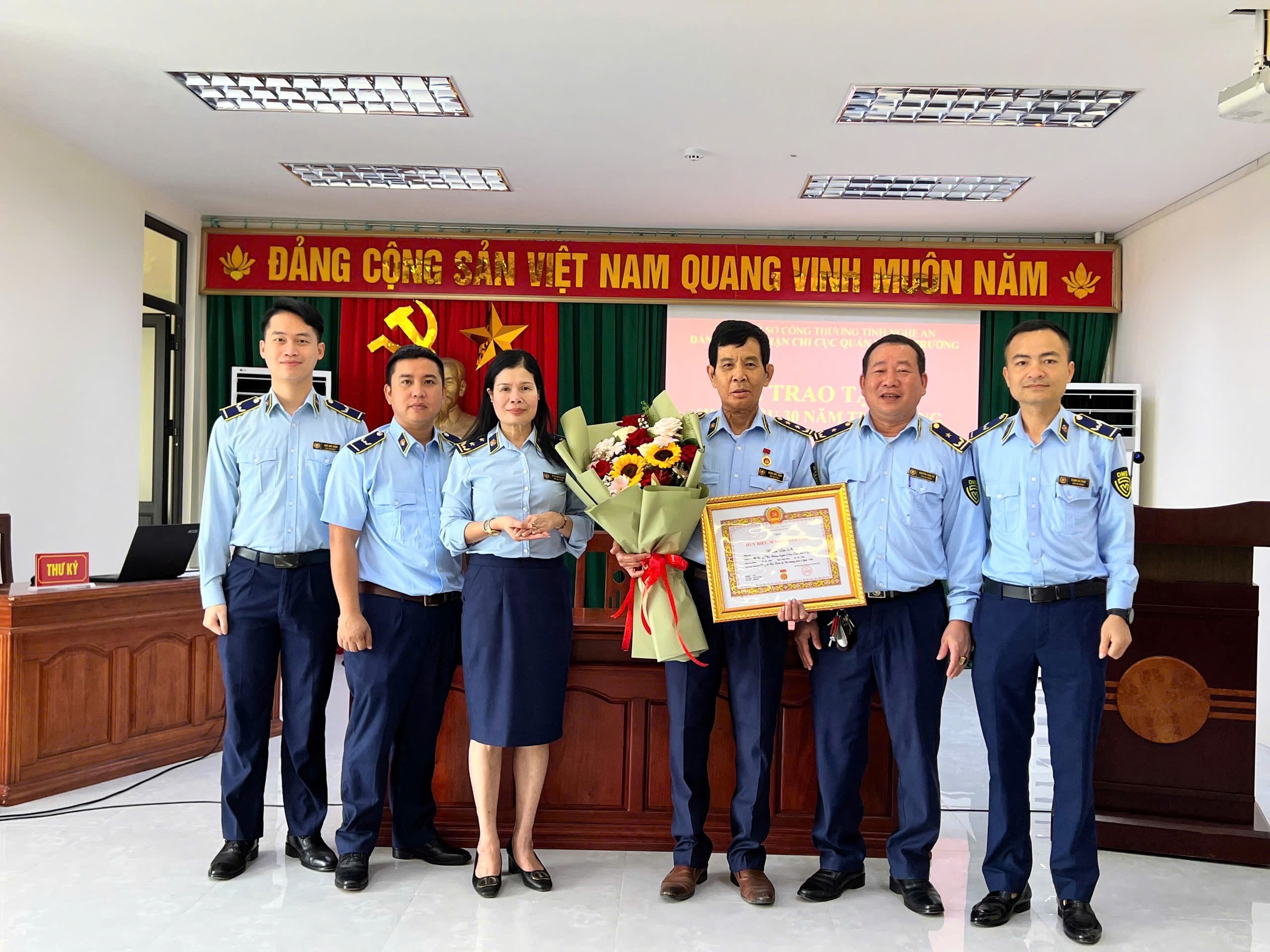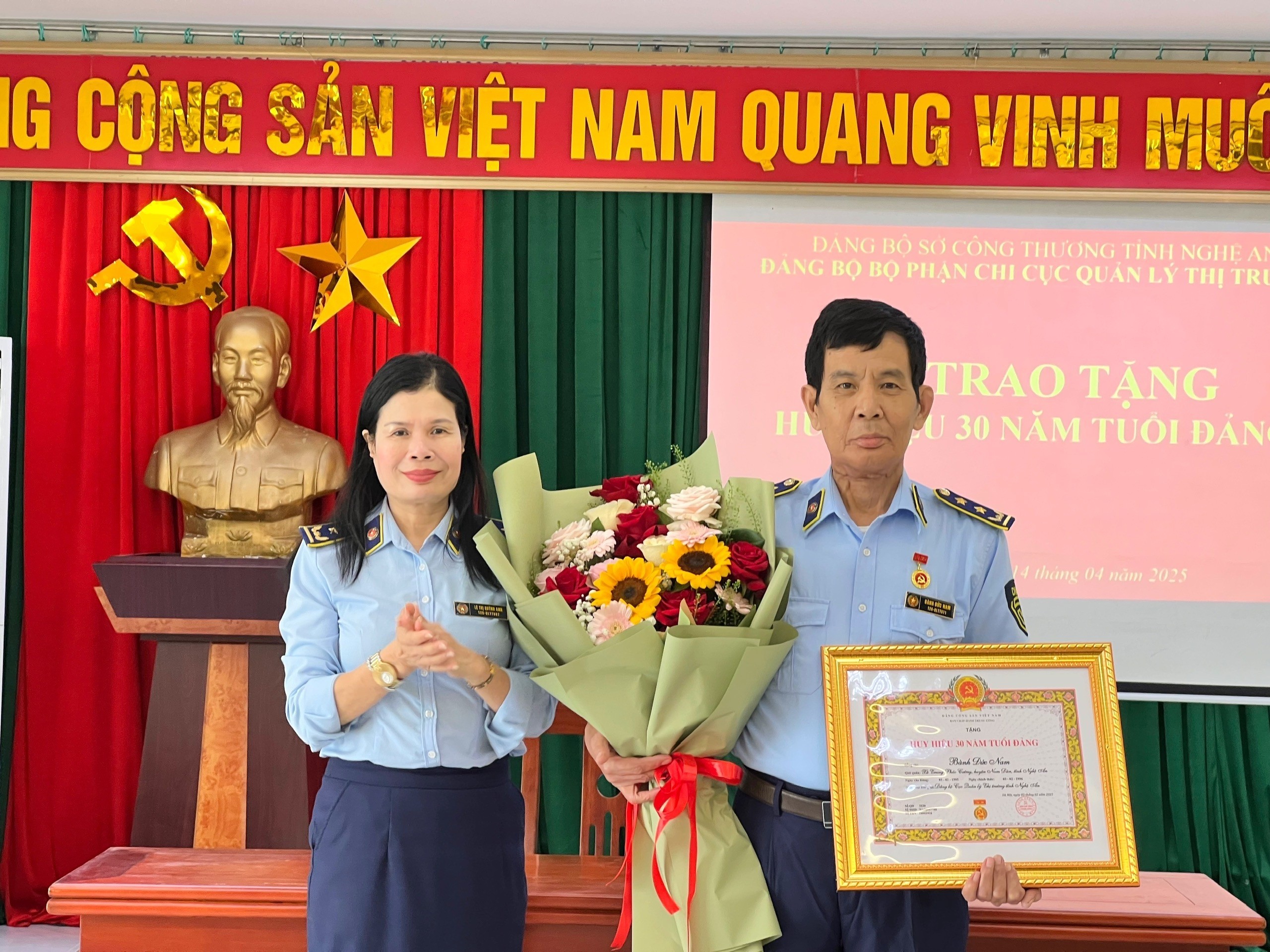 Trước đó, được sự ủy quyền của Đảng ủy cấp trên, ĐBBP Chi cục QLTT đã trao tặng Huy hiệu 30 năm tuổi Đảng cho đồng chí Bành Đức Nam - Bí thư Chi bộ Đội QLTT số 7.